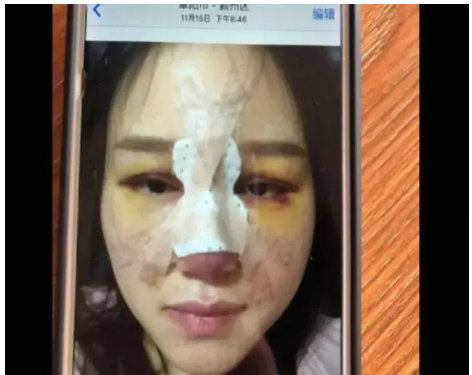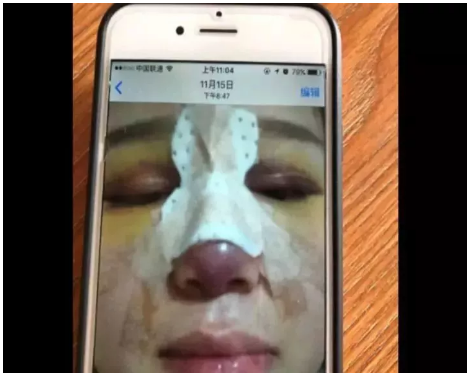 整张脸不仅疼,更是肿到变形。小常的丈夫一直在宁波出差,听说小常做了隆鼻手术,没过几天也回到阜阳准备照顾她,差点没认出来她。
