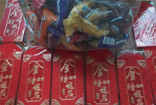 红包和棒棒糖,信心满满陈东是阜阳市红旗中学一名化学老师,也是高三(15)班班主任,学生们喜欢喊他“东哥”。这两天,他瞒着学生们做了一件事——采购了50 多个印有“金榜题名”的大红包和寓意“棒棒哒”的棒棒糖。